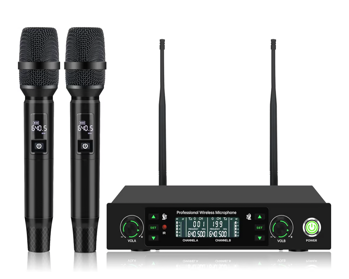 Professional Wireless Microphone System, 500ft Long Range 2.4G Cordless Mic Set with 40H Playtime, Rechargeable Dynamic Microphones Memory Function for Karaoke Singing, DJ, Church, Party, Wedding